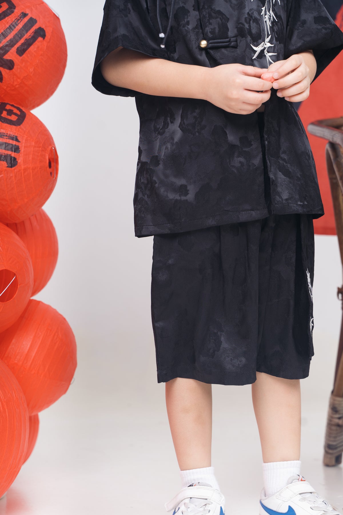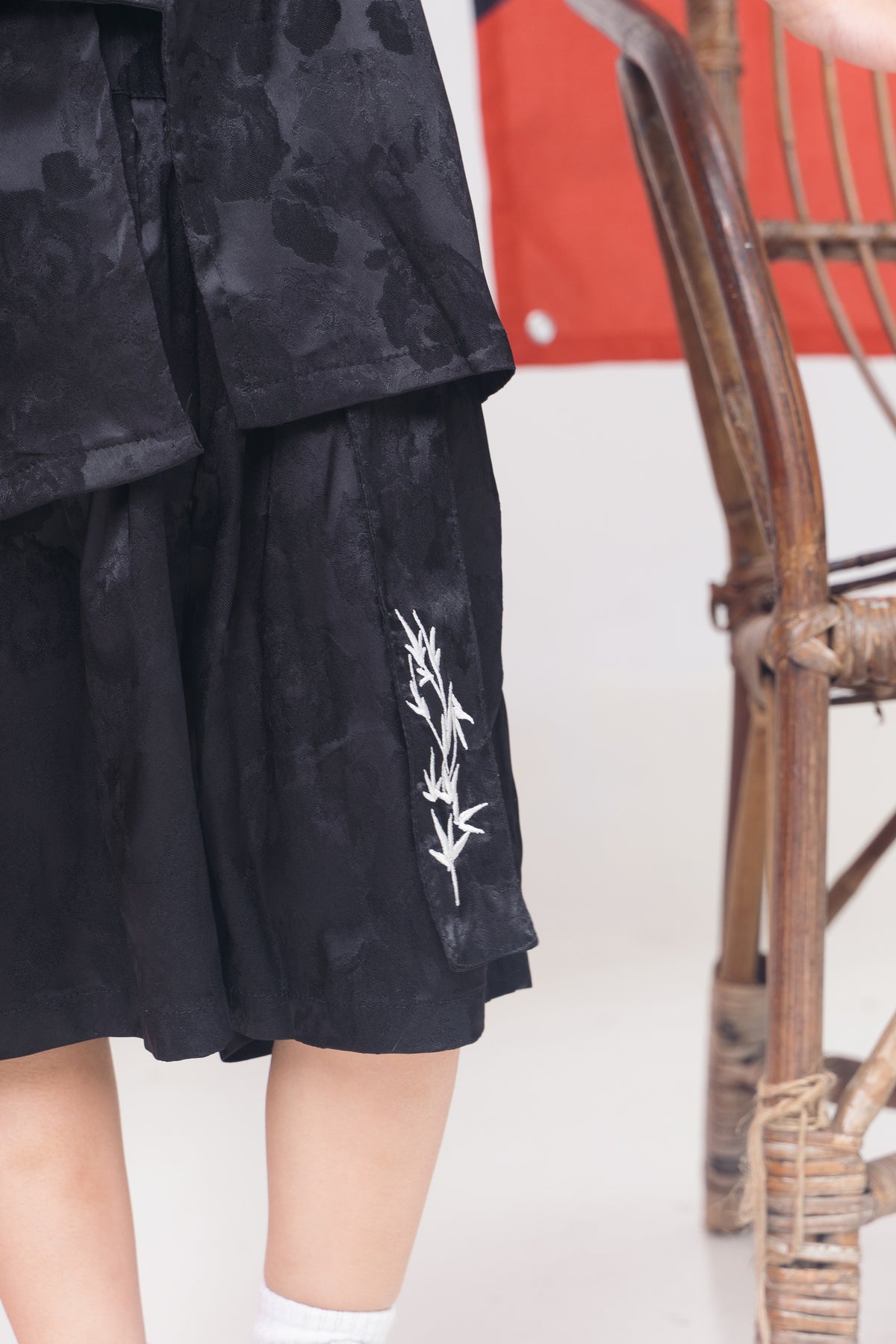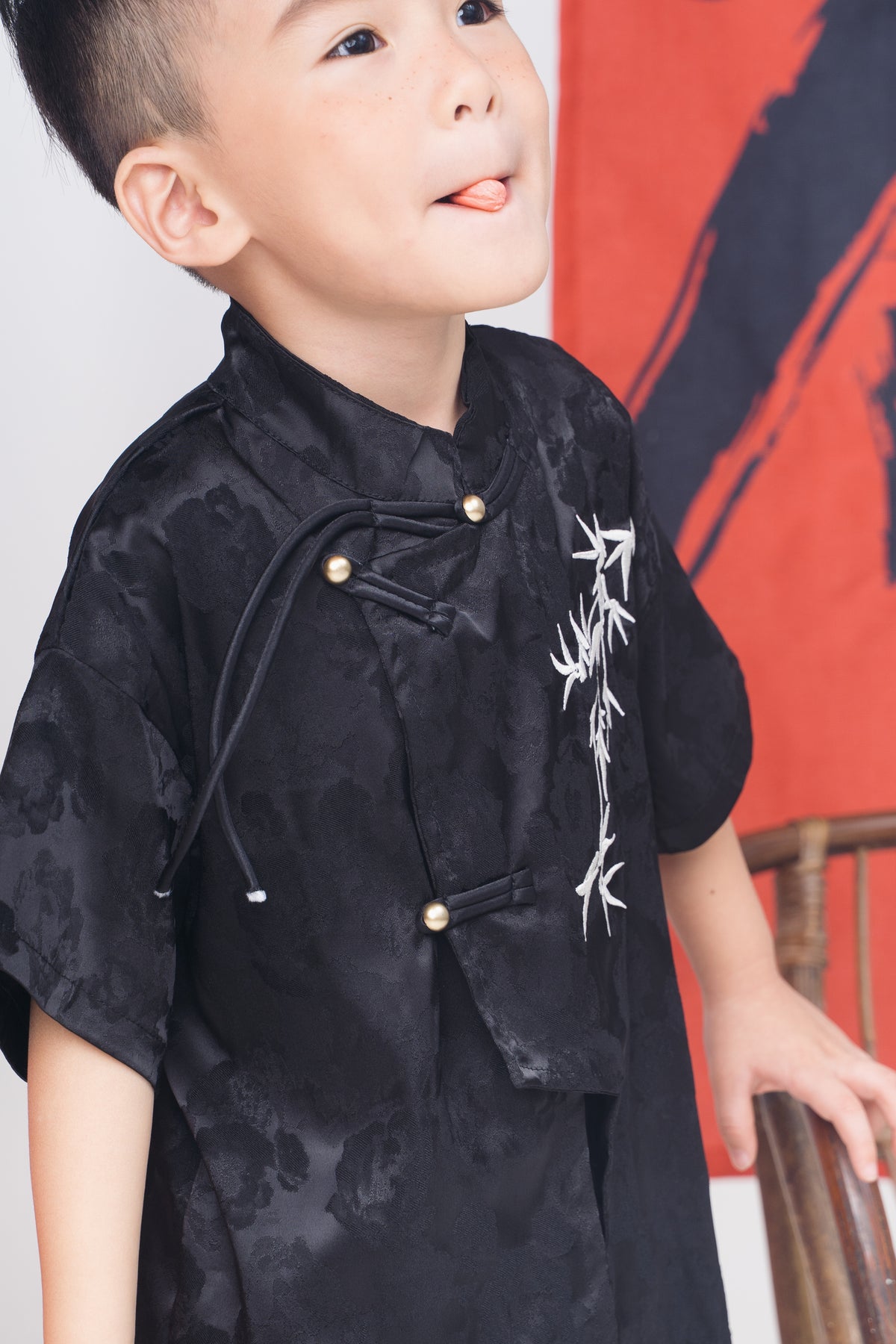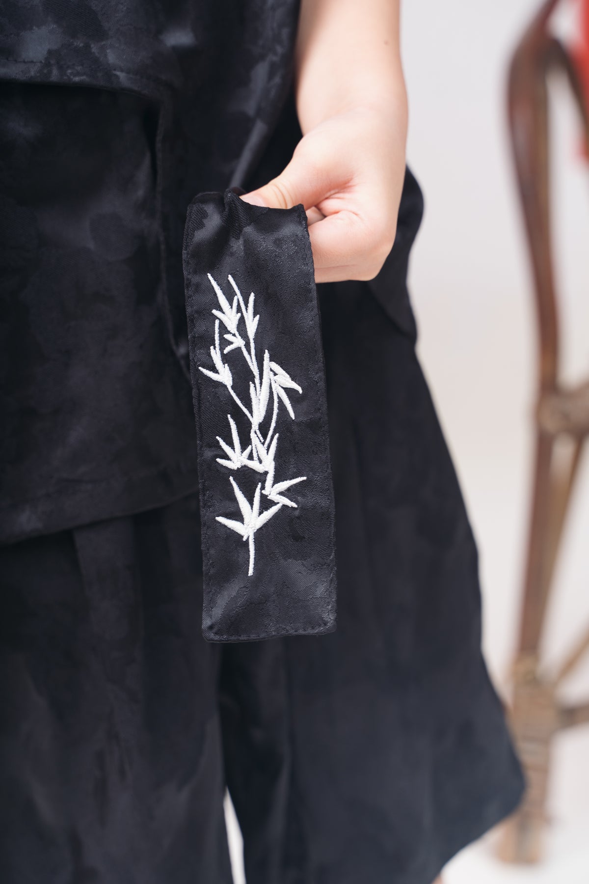 Black Bamboo Embroidered Tang Suit Set (In-Stock)