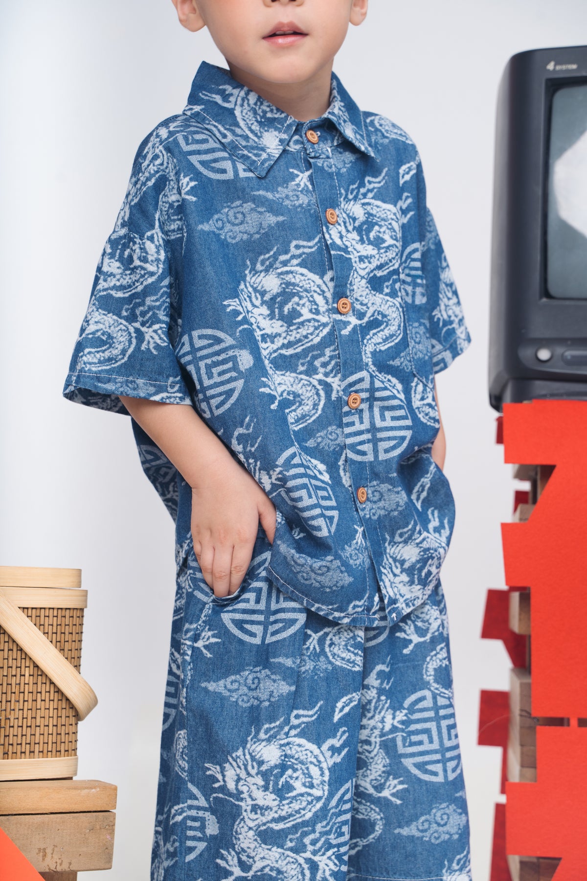 Denim Dragon Tang Suit Set (In-Stock)