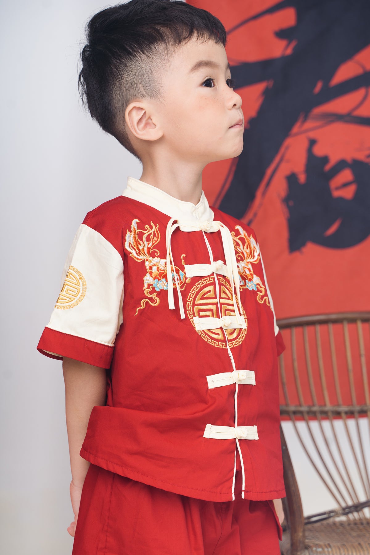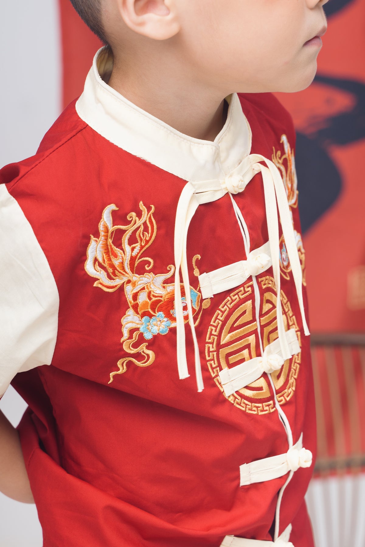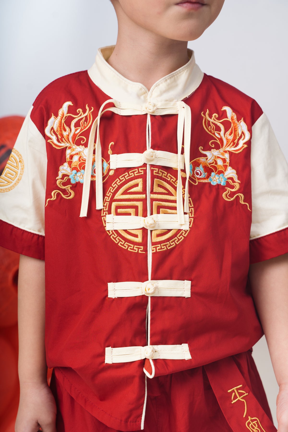 Red Goldfish Embroidered Tang Suit Set (In-Stock)