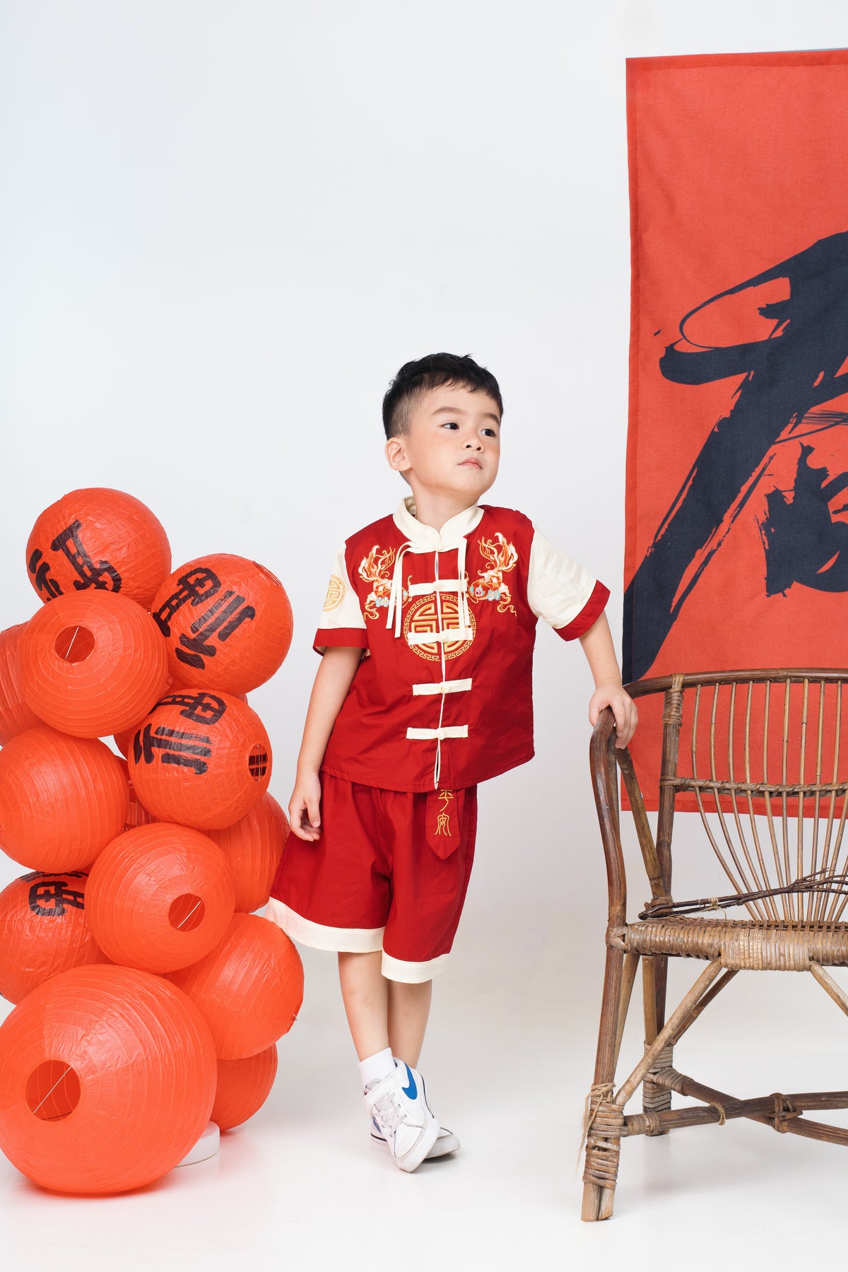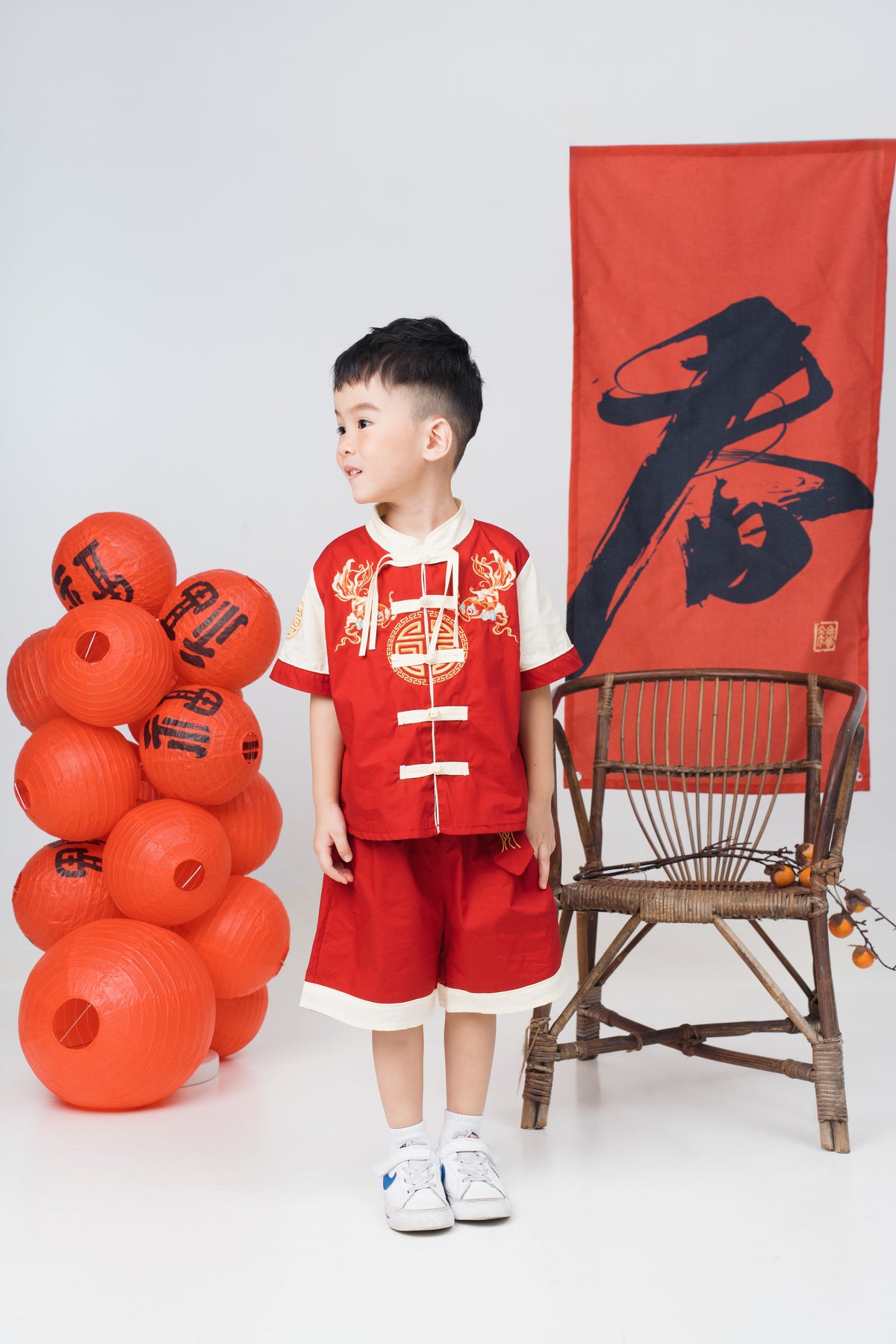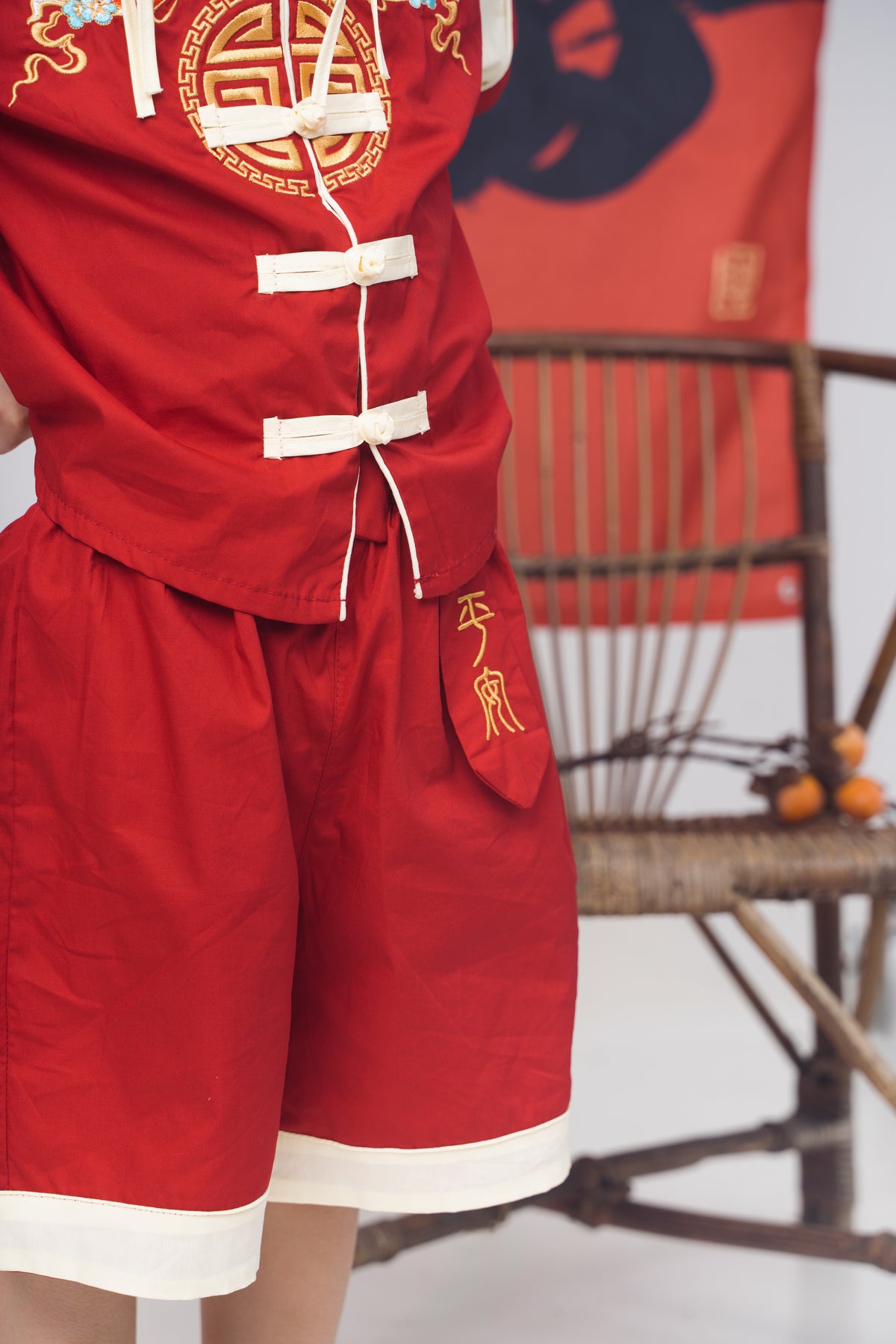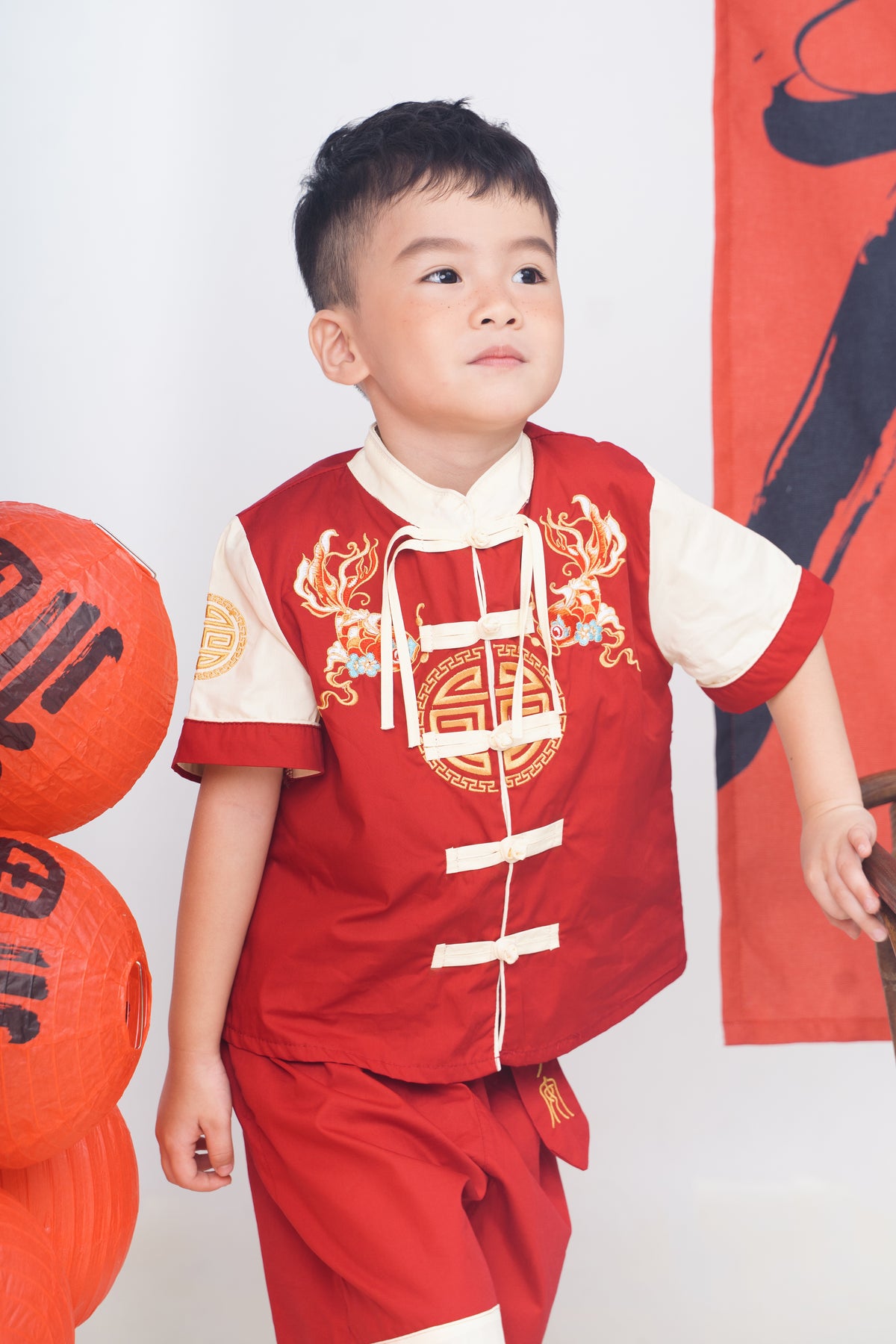 Red Goldfish Embroidered Tang Suit Set (In-Stock)