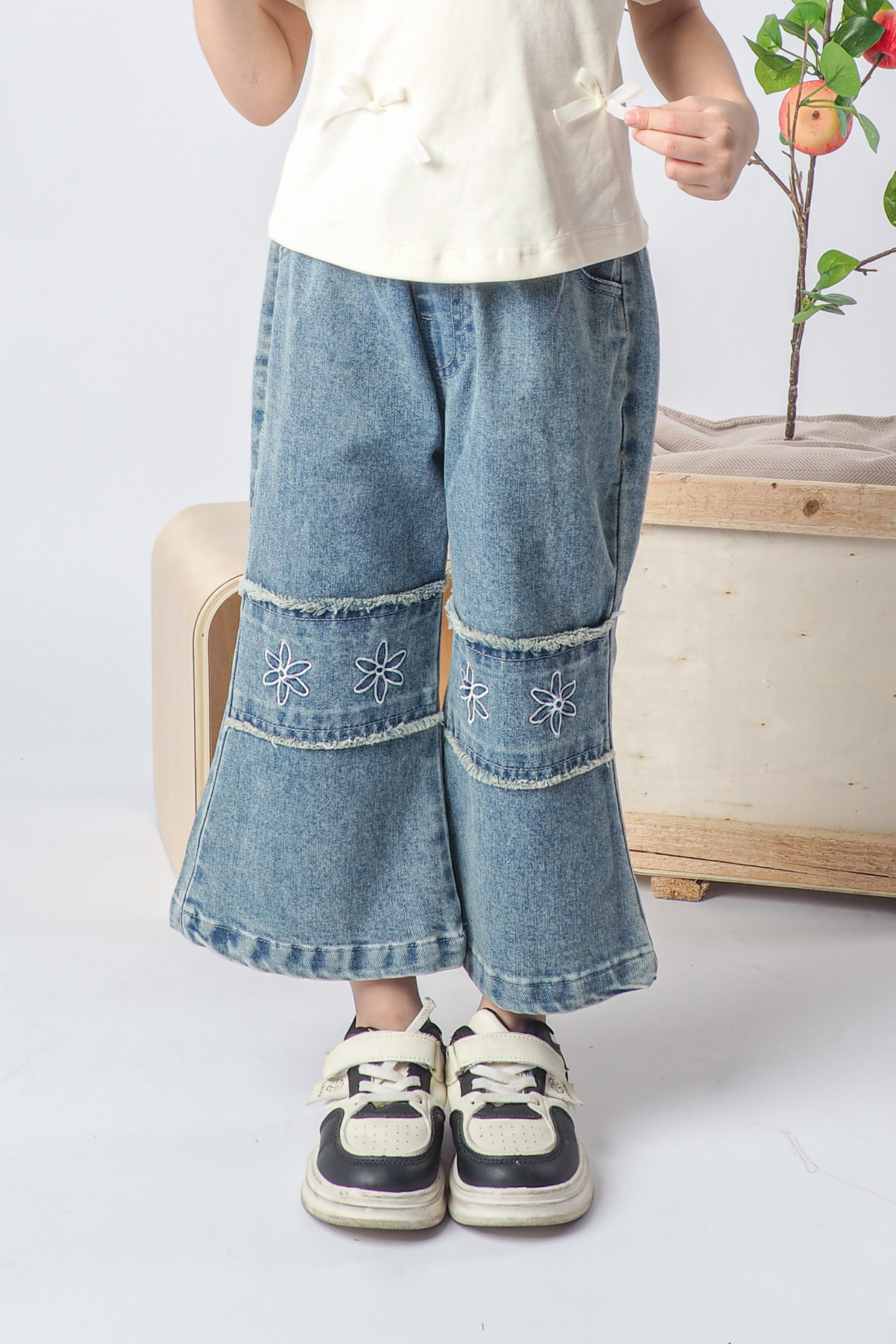 Floral Embroidered Denim Long Pants